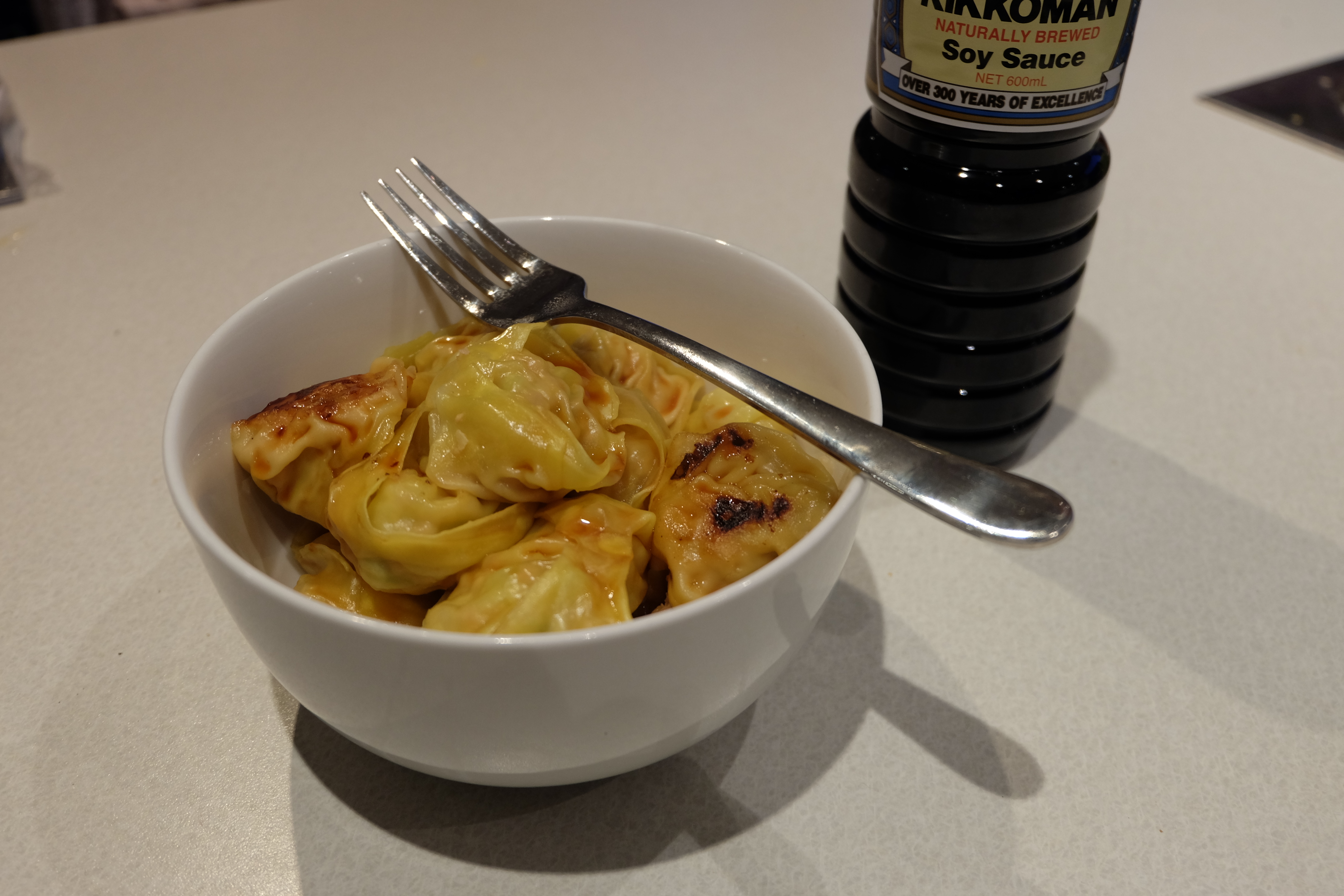 • To cook, heat a pan until hot. Add 1 Tbsp of sesame oil. Place dumplings in a single layer and fry for 2 minutes or until the bottoms are golden brown.
