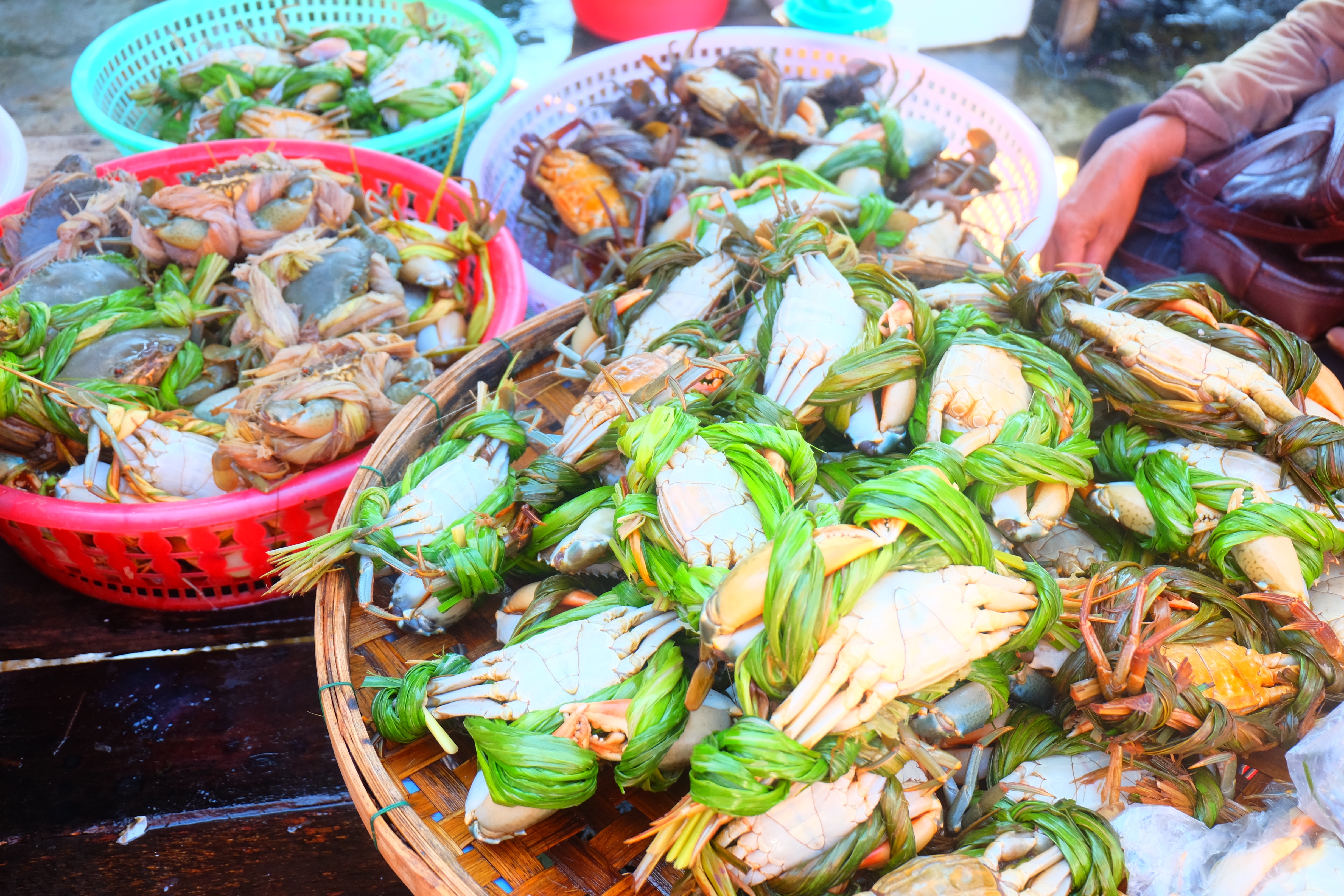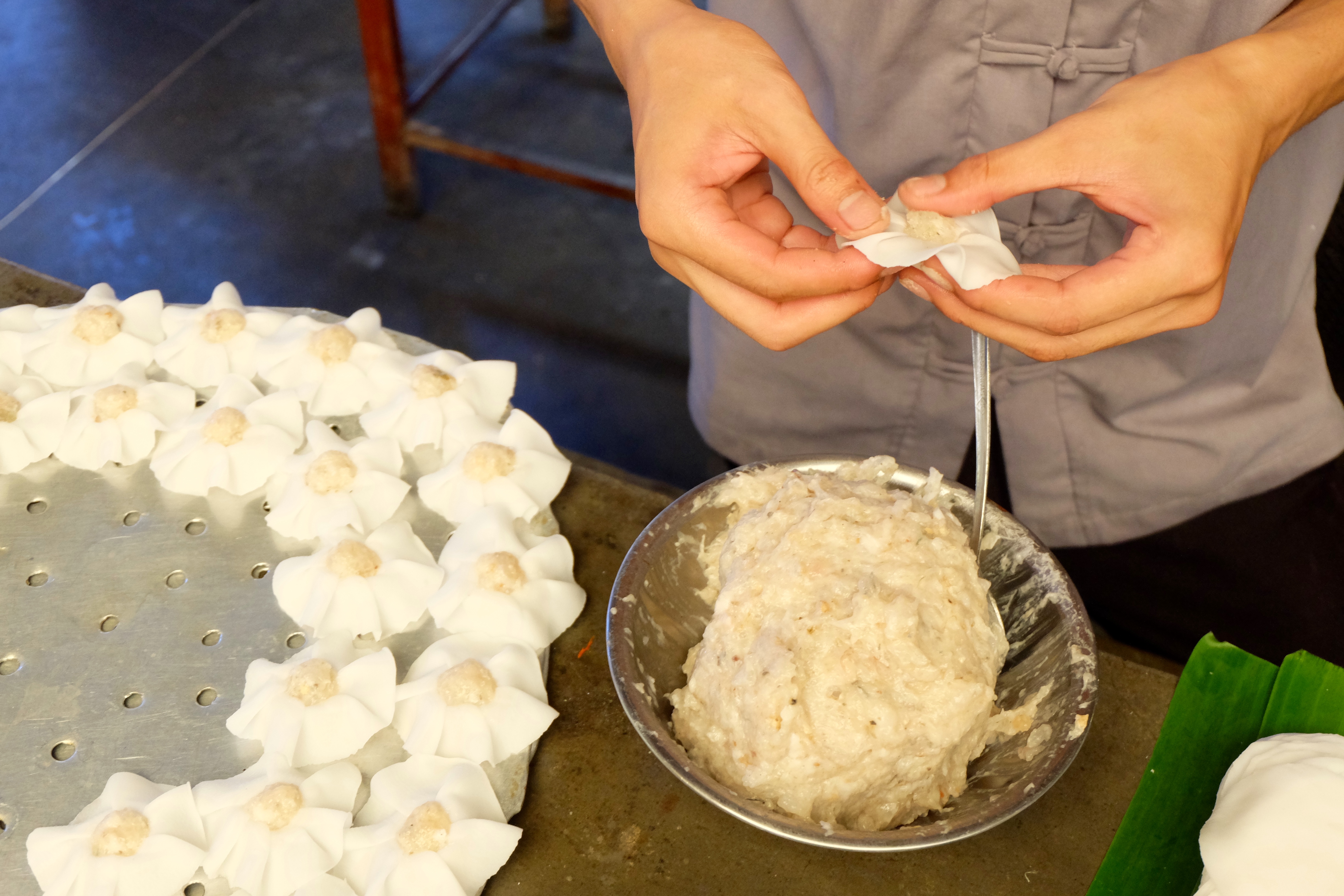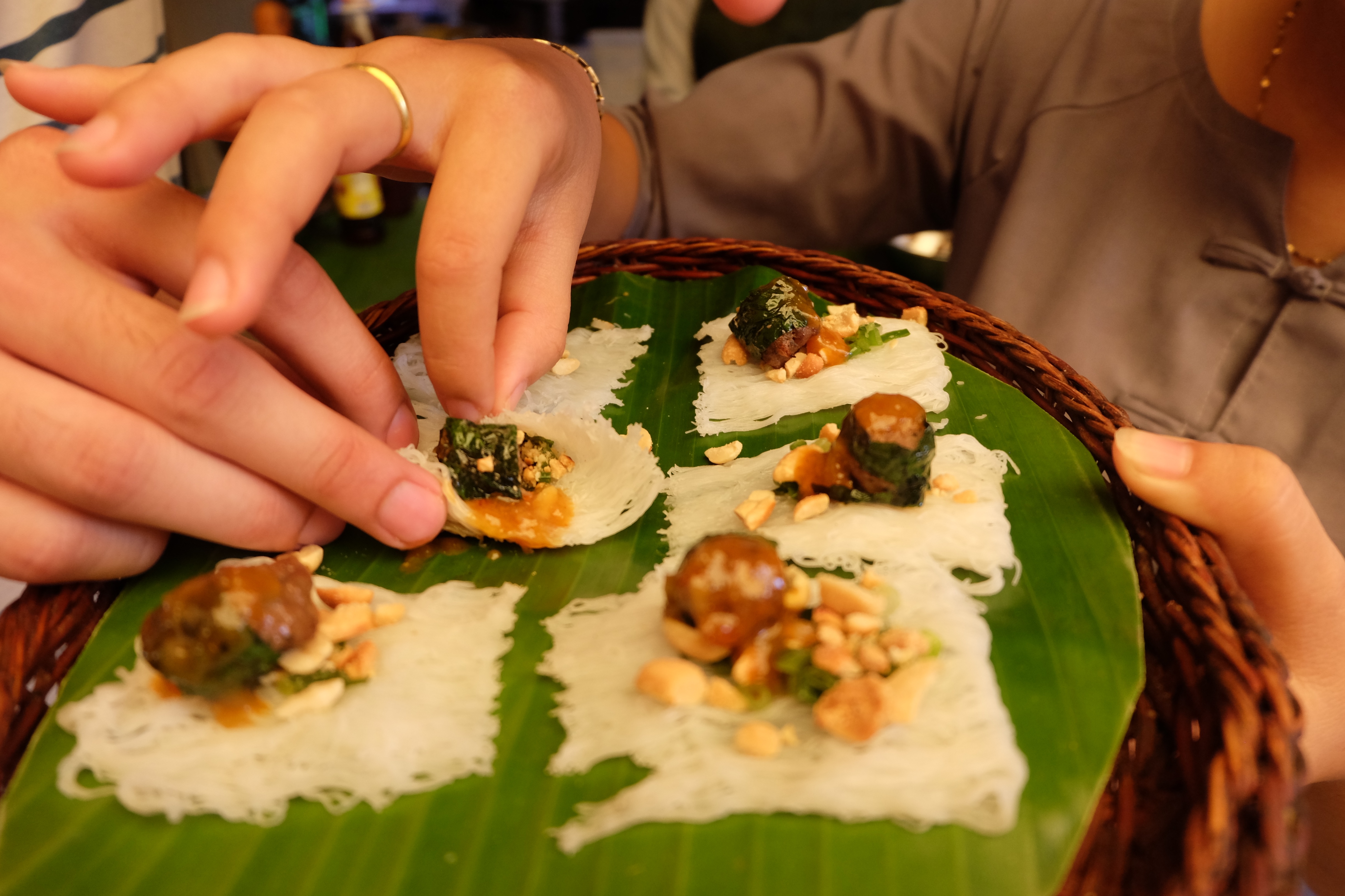 - Cooking class – you will see signs advertising classes everywhere. Basically every restaurant can do a ‘cooking class’. Some of these classes are literally hopping into the kitchen and helping the chef prepare a few meals. I went to Ms Vy’s cooking school – same owner as the restaurant Morning Glory. This was recommended to me by my friend Jess. We went on a tour to the market via boat. We then came back to the restaurant and tried lots of street food. I picked up the courage to try the duck embryo that I didn’t try back in HCMC. I also tried silk worm salad, jellyfish salad, pig ear salad and baby clam salad. They all tasted delicious… but I think it was due to all of the different salad ingredients. We made a selection of dishes; cabbage soup (also known as the mother in law soup), banh xeo, mango salad and chicken satay.